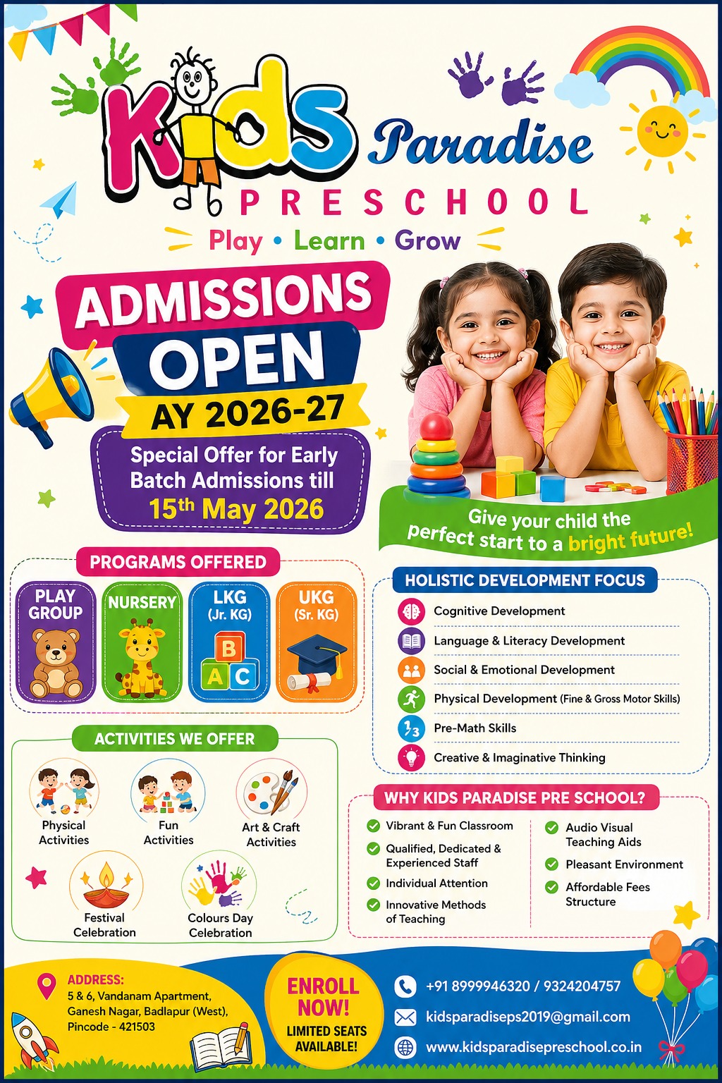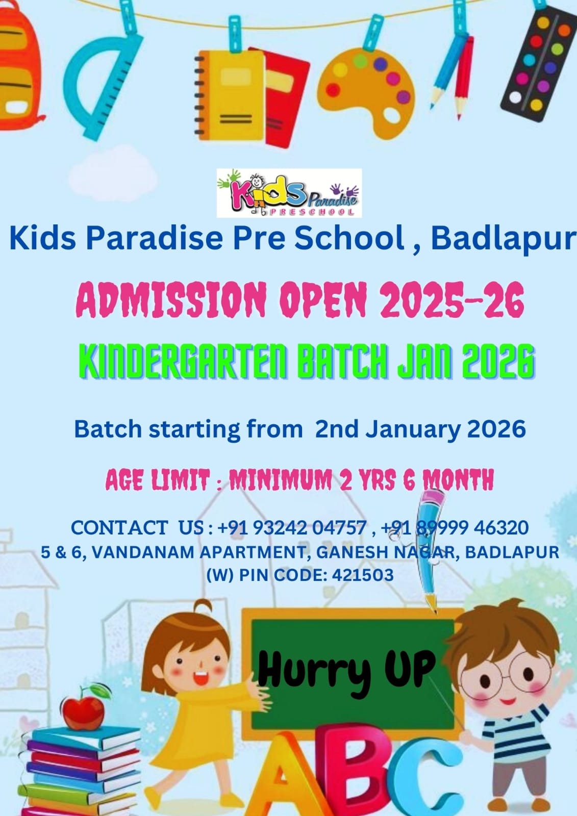 Welcome to Kids Paradise Pre School a division of Deeproot Education LLP. At Kids Paradise Pre School little minds blossom and imaginations soar! At Kids Paradise, we believe in nurturing the unique potential of every child through engaging activities, creative play, and a supportive learning environment. Our dedicated team of educators is committed to fostering a love for learning, curiosity, and social development in each child. Join us as we embark on an exciting journey of exploration, growth, and fun-filled adventures!